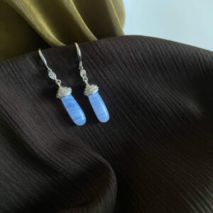藍紋瑪瑙-純銀耳環